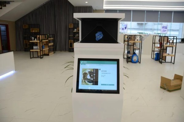 270°全息投影,可以通過點(diǎn)擊屏幕進(jìn)行互動(dòng),查看立體、有聲的集郵文創(chuàng)產(chǎn)品等