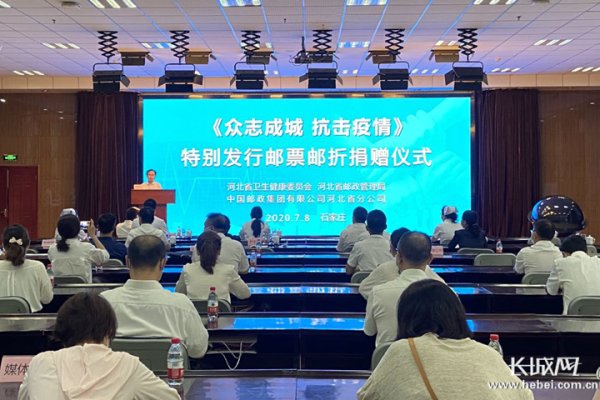 7月8日上午,河北省衛(wèi)生健康委員會、中國郵政集團(tuán)有限公司河北省分公司、河北省郵政管理局聯(lián)合舉辦《眾志成城 抗擊疫情》特別發(fā)行郵票紀(jì)念郵折捐贈儀式,向支援湖北的河北醫(yī)務(wù)人員以及參與新冠肺炎疫情防控工作的先進(jìn)單位和個人捐贈郵折2300個、個人抗疫紀(jì)念張606個。