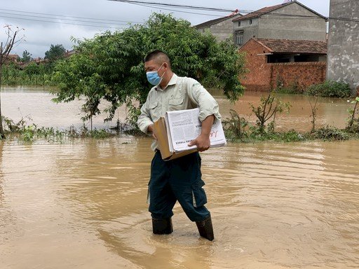 各地郵政實行24小時值班制,加強對地勢低洼營業(yè)網(wǎng)點、投遞站等場地滯水情況的排查;密切關注氣象部門的預報預警,對自行組開的郵路加強GPS監(jiān)測管控,確保郵路安全暢通;郵政員工堅守一線,全力保障郵政通信生產(chǎn)正常運行。圖為湖北省宜城市鄧林郵政支局投遞員趙斌涉水投送,確保郵件不延誤。 □李全權 攝影報道