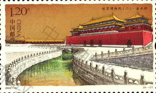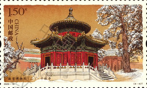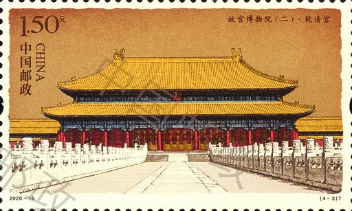 紫禁城建造技藝高超,內(nèi)在考究精妙,外在磅礴大氣,代表著當時最高的建造水平。中央軸線上分布著三大殿(太和殿、中和殿以及保和殿)和后三宮(乾清宮、交泰殿以及坤寧宮),左右兩條次軸線上分別分布著慈壽宮、寧壽宮等宮殿。出于防御需要,宮殿建筑外圍筑有宮墻,四周分布有角樓,外有護城河環(huán)繞。故宮平面示意圖首次登上郵票,細膩、完整地呈現(xiàn)了故宮恢弘的建筑布局。