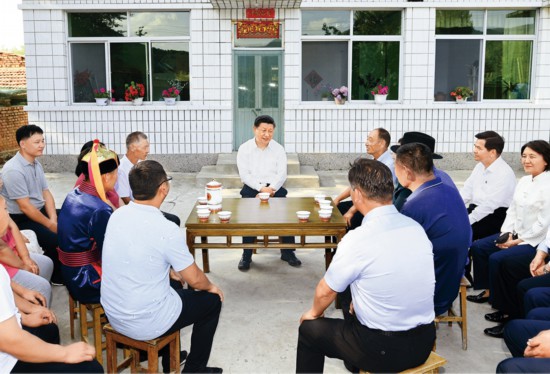 2019年7月15日至16日,中共中央總書記、國家主席、中央軍委主席習(xí)近平在內(nèi)蒙古考察并指導(dǎo)開展“不忘初心、牢記使命”主題教育。這是15日下午,習(xí)近平在赤峰市喀喇沁旗河南街道馬鞍山村村民張國利家,同基層干部群眾代表座談交流。 新華社記者 謝環(huán)馳/攝