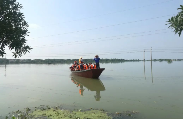 14日8:30,在臨時渡口,所有群眾排隊穿戴救生衣,在我們的指導(dǎo)下有序上船?!昂樗疅o情,郵政有情,你們真是好樣的!”“感謝你們?yōu)槲覀儽q{護(hù)航!”鄉(xiāng)親們對此很是支持,都說郵政干的是服務(wù)百姓的好事,我的心也暖暖的??粗鴿M載保障受災(zāi)群眾生活物資的“郵船”,我感覺它似乎變得輕盈起來,駛過洪水漫過的蔬菜棚頂、劃過沒頂?shù)臉涔?,在洪流中破浪前行,全速前進(jìn)。