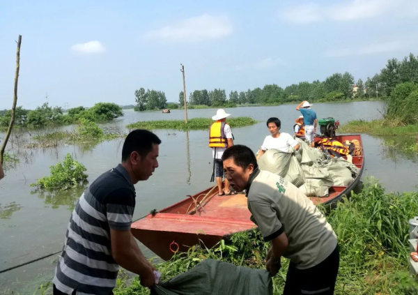9:00,到達(dá)轉(zhuǎn)移安置點,都昌縣分公司幫扶人員早早就在那等候。安頓好受災(zāi)群眾后,我們又一起將周邊幾個圩堤防汛指揮部和受災(zāi)鄉(xiāng)鎮(zhèn)人員所需的方便面、礦泉水、衣物等必需品和進(jìn)口郵件一袋袋搬運上船,打包出發(fā)。