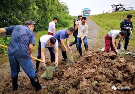 安徽各地郵政企業(yè)服從地方政府調(diào)度,發(fā)動(dòng)黨員員工組建了10多支、100多人的黨員先鋒隊(duì)、青年突擊隊(duì),奔赴抗洪搶險(xiǎn)一線,參與駐點(diǎn)值班、巡堤和沿河巡檢等工作,及時(shí)通報(bào)水情和汛情。