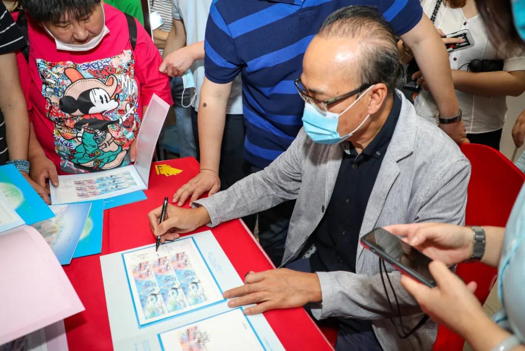 活動現(xiàn)場,郵票設(shè)計師韓秉華為廣大上海郵迷簽名留念,上海郵政提供郵品銷售、加蓋紀念戳等郵政服務(wù)。中國郵政集團有限公司郵政業(yè)務(wù)部總經(jīng)理王志奇、上海市浦東新區(qū)區(qū)委宣傳部部長唐勁松出席本次活動,并共同為郵票首日封揭幕。