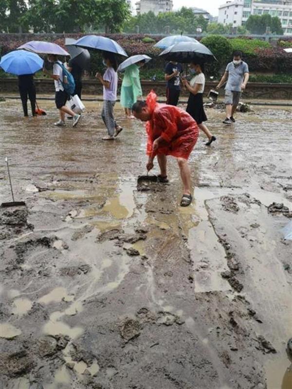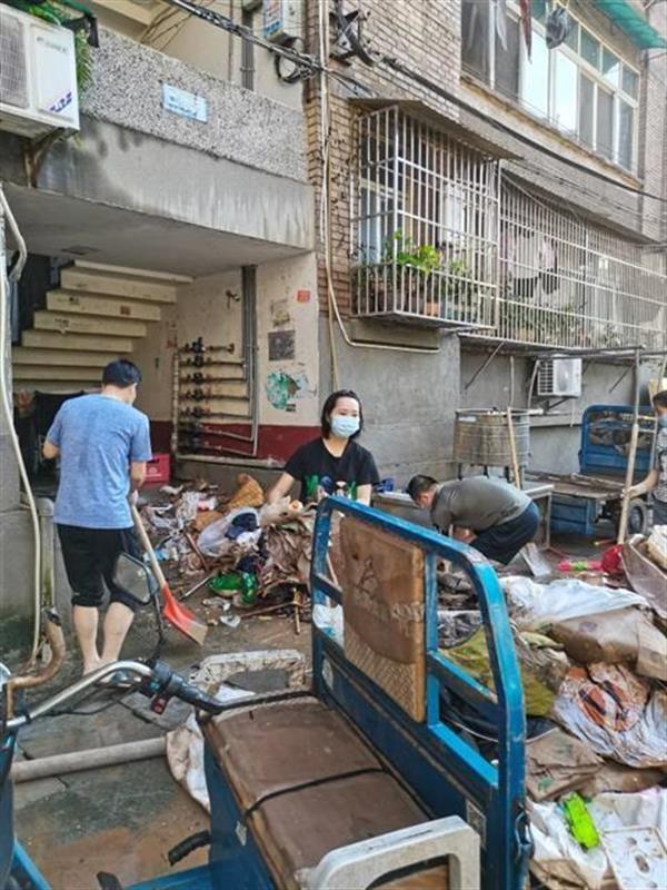 在社區(qū)的統(tǒng)一安排下,黨員同志們發(fā)揮先鋒模范作用,積極主動開展人員疏散、群眾安置、險情處置、后勤保障等工作,他們拿著掃帚、揮舞著鐵鍬,一家一家清掃淤泥、一段一段清理街道。