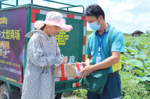 7月22日,是我國農(nóng)歷的大暑節(jié)氣。近日,廣西壯族自治區(qū)貴港市氣溫持續(xù)攀升,最高溫度達(dá)37攝氏度。為了把郵件及時、快速、準(zhǔn)確地送到群眾手中,郵政員工在炎炎烈日下,電話不離手,腿腳不停歇,確保郵件安全送達(dá)。圖為湛江鎮(zhèn)郵政支局投遞員到荷花田里送郵件?! 躐麞|新 攝影報道