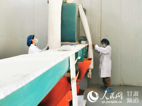 工作人員對(duì)青稞進(jìn)行初篩。(郵儲(chǔ)銀行甘肅省分行供圖)