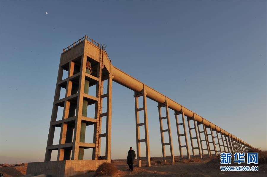 這是位于紅寺堡境內(nèi)的寧夏扶貧揚(yáng)黃灌溉工程泵站輸水管道(2009年12月27日攝)。 新華社記者 王鵬 攝