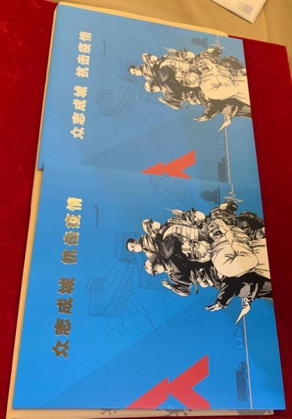 贈(zèng)送的《眾志成城 抗擊疫情》郵票郵折將支援湖北的醫(yī)療隊(duì)員抗疫照片制成了肖像郵票紀(jì)念張,匯同一整版抗疫郵票和絹質(zhì)首日封制作成精美的郵折,贈(zèng)送給奮戰(zhàn)在抗擊疫情一線的醫(yī)務(wù)工作者,表達(dá)對(duì)他們勇敢、堅(jiān)強(qiáng)、奉獻(xiàn)精神的敬佩之情。每個(gè)郵折都是唯一編碼,具有特殊的紀(jì)念意義。