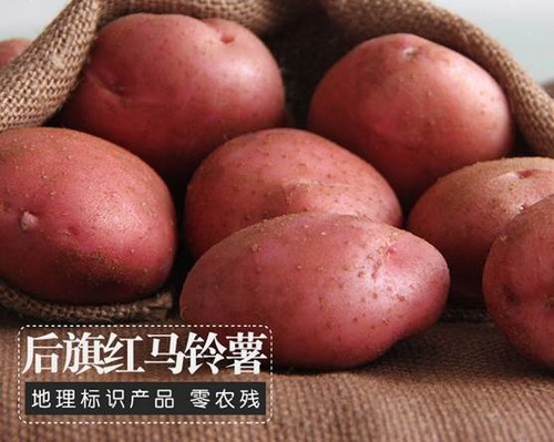 “后旗紅”土豆是馬鈴薯的一個品種,因種植在中國薯都烏蘭察布察右后旗而得名?!昂笃旒t”馬鈴薯種植基地位于察哈爾火山地質公園火山群下,北緯41度。采用微噴方式,水源來自150米火山巖下深層礦泉水。其產地烏蘭察布察哈爾右翼后旗,地屬溫帶大陸性季風氣候,無霜期短、晝夜溫差大,降雨集中在馬鈴薯生長期季節(jié),雨熱同季,土壤為沙性土,為馬鈴薯生長提供了得天獨厚的優(yōu)越條件。