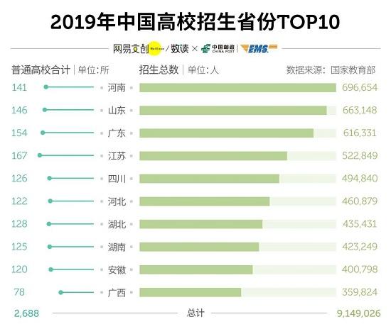 根據網易數讀的數據,錄取通知書的地區(qū)發(fā)放比例,也預示著大學新生們將在哪里展開他們新一段的人生。