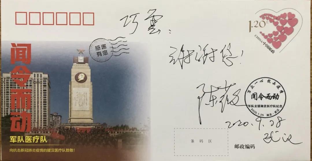 疫情期間,武漢市分公司為表達武漢人民對不計報酬、不論生死的援漢醫(yī)療隊感恩、感謝、感激之情,以31支援漢醫(yī)療隊為主題,融合武漢人文風光和特色地標元素,與人民日報社新媒體中心聯(lián)合開發(fā)了這套《感恩有你》抗疫紀念郵資封。用郵政特有的“文化符號”致敬仁心、感恩大愛,銘記為武漢拼過命的人們。9月24日,在挑選送給108位勇士的禮物時,從軍29載的陳薇院士經(jīng)過反復斟酌和比較,在武漢市分公司推薦的多款抗疫郵品中,最后敲定了這套含有軍隊醫(yī)療隊紀念封的郵品。