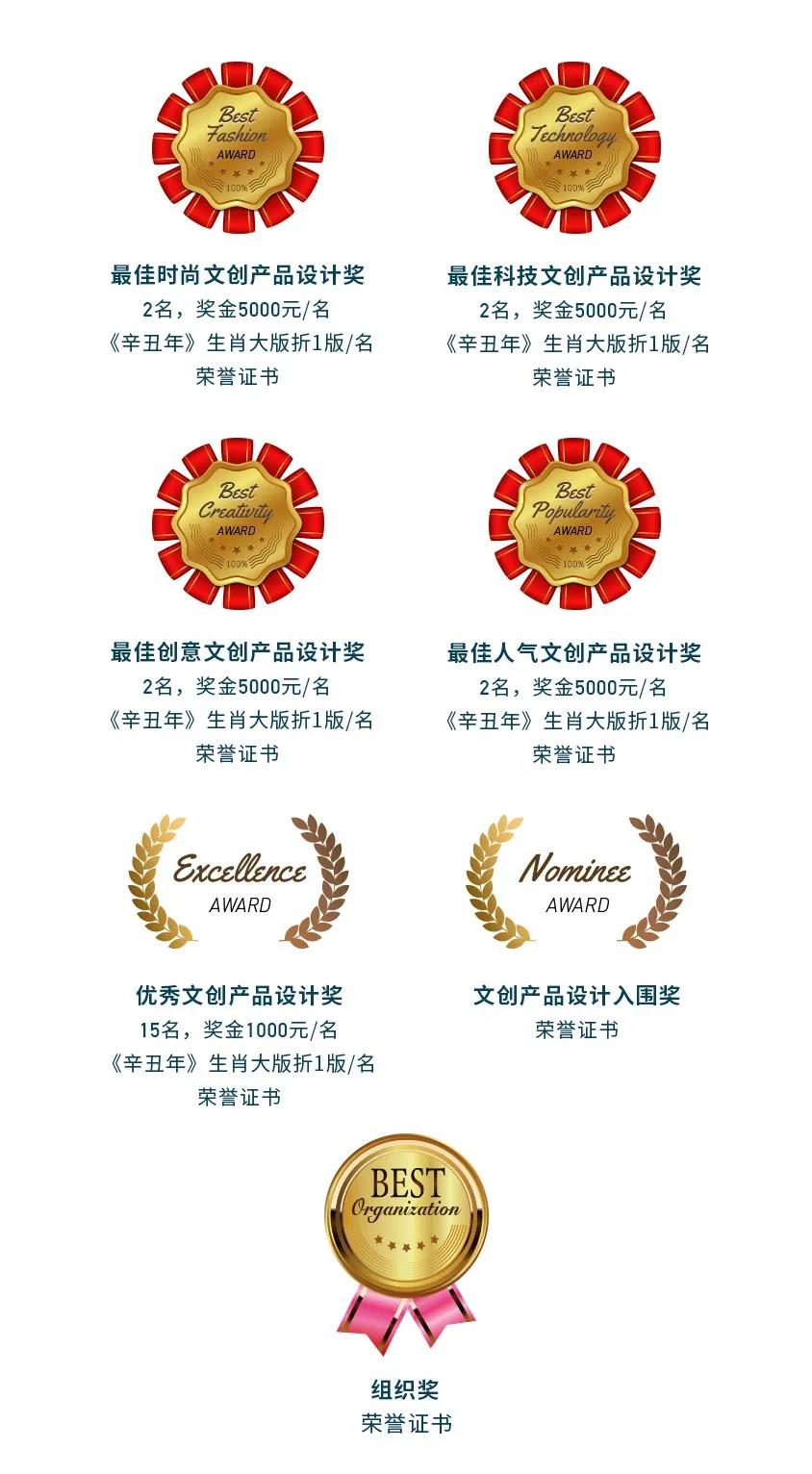 本次賽事還設(shè)立了最佳時(shí)尚獎(jiǎng)、最佳科技獎(jiǎng)、最佳創(chuàng)意獎(jiǎng)、最佳人氣獎(jiǎng)和優(yōu)秀獎(jiǎng)等眾多獎(jiǎng)項(xiàng),中國郵政將扶植大賽優(yōu)秀項(xiàng)目,使獲獎(jiǎng)作品優(yōu)先轉(zhuǎn)化為具有市場價(jià)值的官方文創(chuàng)產(chǎn)品,實(shí)現(xiàn)商業(yè)化運(yùn)營,還將選擇所有獲獎(jiǎng)且具備商業(yè)化推廣潛力的產(chǎn)品,將其列入中郵文創(chuàng)孵化項(xiàng)目。作品作者均將獲得郵政文化資源、項(xiàng)目資金、渠道營銷等多方面支持。