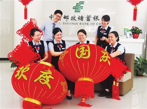為慶祝新中國成立71周年、歡度中秋佳節(jié),郵儲銀行海南省分行直屬支行員工利用工作之余,買來燈籠、編制中國結(jié),積極營造節(jié)日氛圍,為爭創(chuàng)中國銀行業(yè)“千家示范網(wǎng)點”再添一把火。