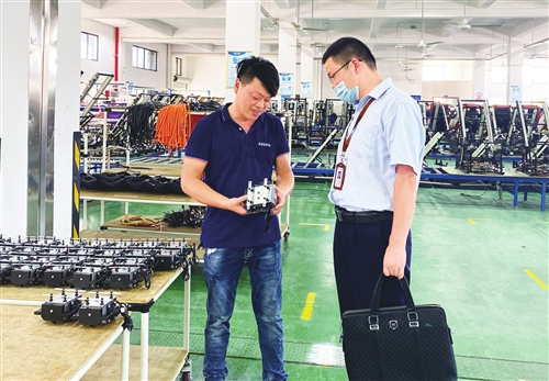 圖為該分行信貸人員走進(jìn)當(dāng)?shù)乜萍夹推髽I(yè)生產(chǎn)車間,了解企業(yè)的融資需求。