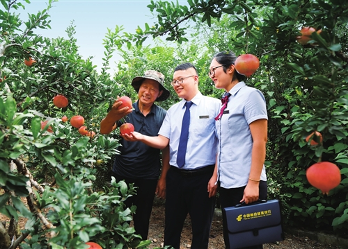 “今年的石榴怎么樣,銷(xiāo)售的情況咋樣?”“挺好的,這個(gè)月賣(mài)了30萬(wàn)元?!?月22日,山東省棗莊市嶧城區(qū)冠世榴園景區(qū)內(nèi),主營(yíng)石榴盆景、石榴苗批發(fā)生意的農(nóng)戶(hù)杜寶發(fā)與郵儲(chǔ)銀行嶧城區(qū)支行信貸員聊起了天。