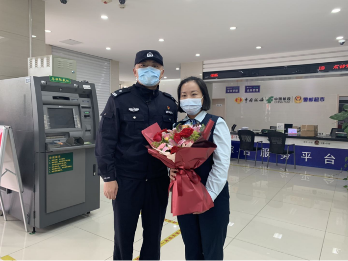 “感謝你積極出手?jǐn)r截了這起電信詐騙,挽救了一個(gè)家庭?!?0月14日,浦口公安分局珠江派出所的民警及見義勇為珠江工作站一行人來南京浦口郵政分公司珠江支局,為理財(cái)經(jīng)理顏燕獻(xiàn)上鮮花,并授予“見義勇為積極份子”稱號,以表彰其在防止客戶遭受電信詐騙中做出的努力和貢獻(xiàn)。