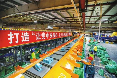 經(jīng)過生產(chǎn)場地擴建和工藝流程改造,上海郵政松江洞涇處理中心峰值處理能力達110萬件/天。□許雨舟 攝