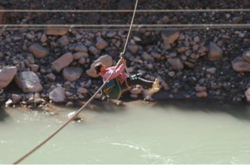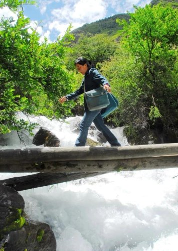 尼瑪拉木至今仍記得第一次過溜索的場景:她站在江邊,面對呼嘯的狂風(fēng)和咆哮的江水,回憶起沉寂在江中的弟弟,心里一陣陣發(fā)怵,鼓不起勇氣。 “我鼓勵(lì)自己,拉木你能行”, 可當(dāng)鉤子掛上溜索的一瞬間,尼瑪拉木渾身一點(diǎn)力氣都沒有了。桑稱所長用力推了她一把,就這樣,尼瑪拉木被吊在半空中,耳邊只剩下急促的風(fēng)聲和腳下的滔滔江水聲。