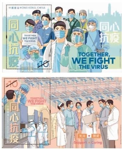 香港郵政15日公布,將于本月29日發(fā)行主題為“同心抗疫”的特別郵票及相關(guān)郵品,以表揚社會各界的抗疫英雄,并感謝中央政府對香港抗疫工作給予的全力支持。此次發(fā)行的郵票小型張共有2款,各嵌有一枚10港元的特別郵票。其中一款描繪一群與香港市民并肩作戰(zhàn)、致力維持緊急服務的抗疫英雄,另一款郵票小型張則以不同場景呈現(xiàn)中央政府對香港的關(guān)愛和重視。