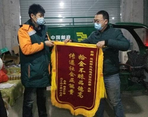 “您撿到包后及時歸還,我們非常感謝……”12月11日,拾金不昧的郵政快遞小哥王新,收到了失主李女士家人的當(dāng)面致謝以及一面致謝錦旗。