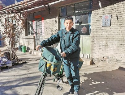 分揀之后,王懷敬出發(fā)了。每天,他要完成周邊4個大村15個投遞點、200多戶村民的郵件收發(fā)工作?!按謇锏穆凡缓米?,到處都是高坡,電動車怕走著走著就沒電了,還是自行車靠譜,騎不動了,就推著走?!?7年來,王懷敬送件,靠的是一輛自行車和兩個挎包。