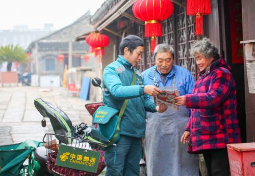 “嘟嘟嘟……”1月29日,天邊剛泛魚(yú)肚白,如皋市搬經(jīng)鎮(zhèn)大街小巷就響起了熟悉的車?yán)嚷?。鄉(xiāng)郵員趙穎東駕駛著一輛綠色“小面包”,熟練地穿行于田間地頭。當(dāng)天,他要送達(dá)的,除了幾百斤重的報(bào)紙、信件、包裹,還有一份份沉甸甸的“紅色大禮包”。