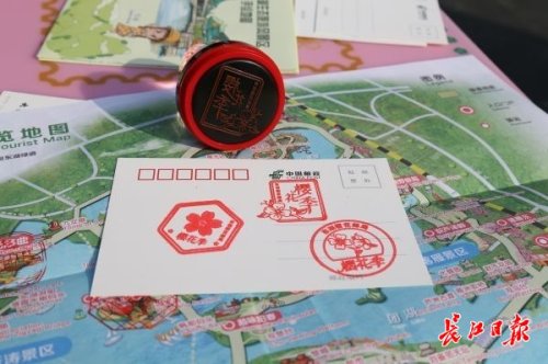 另外,櫻花郵局專門打造了東湖風(fēng)景紀(jì)念戳、賞櫻地標(biāo)戳等18款專屬紀(jì)念戳。賞櫻期間,游客可在櫻花郵局領(lǐng)取一張手繪地圖,集齊5處指定地標(biāo)的紀(jì)念戳,即可領(lǐng)取一份專屬櫻花禮品。