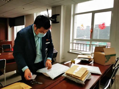 按照分工,柴閃閃負責代表團內(nèi)的服務工作,陳蘭穎負責和代表團以及駐地溝通,在符合代表團規(guī)定和疫情防控要求的前提下提供郵政服務。3月6日中午時分,柴閃閃急匆匆地扒拉了兩口飯,就回到房間,一張張地將有需求的代表和工作人員填好的、由陳蘭穎特別制作的兩會服務單拍照回傳給她。東四郵局內(nèi),隨著手機上微信信息不斷響起,陳蘭穎帶著工作人員仔細對照服務單,給代表和工作人員分裝郵件。陳蘭穎說:“我的手機24小時開機,有不清楚的問題,無論是閃閃還是其他代表可以隨時找我?!蓖砩?點,經(jīng)過嚴格消毒處理的郵件被東四郵局的工作人員送到代表團駐地,以“無接觸”的形式由工作人員領走。