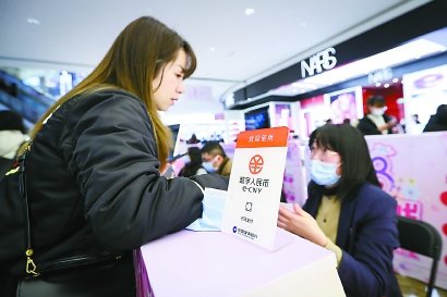 新世界城的收銀臺上已擺放數(shù)字人民幣的宣傳材料。