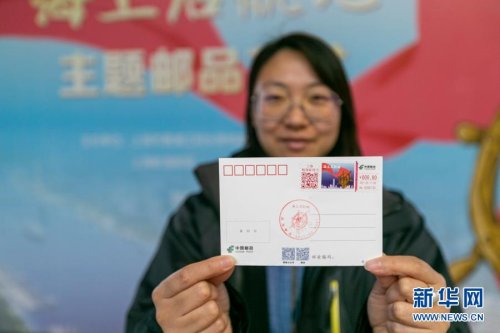 3月17日,黨員代表在現(xiàn)場手持展示《海上啟航地》主題郵品。