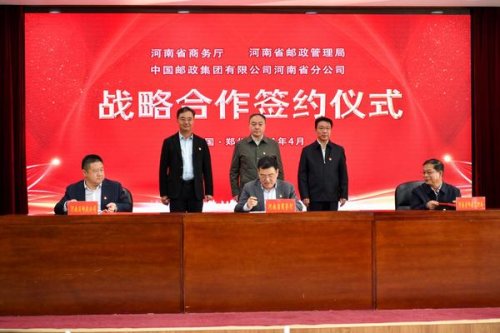 4月13日,河南省商務(wù)廳、河南省郵政管理局與中國(guó)郵政集團(tuán)有限公司河南省分公司在鄭州簽署戰(zhàn)略合作框架協(xié)議,以充分發(fā)揮商務(wù)系統(tǒng)和郵政系統(tǒng)優(yōu)勢(shì),推動(dòng)各方資源共享、優(yōu)勢(shì)互補(bǔ),進(jìn)一步提高商務(wù)和郵政服務(wù)河南經(jīng)濟(jì)社會(huì)能力,為農(nóng)村流通體系建設(shè)營(yíng)造良好的發(fā)展環(huán)境,在助推鄉(xiāng)村振興戰(zhàn)略實(shí)施上實(shí)現(xiàn)更大突破。
