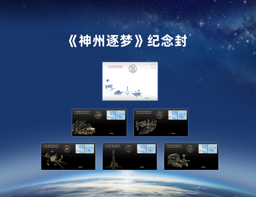 《神州逐夢》系列紀念封,包括《東方紅一號衛(wèi)星》《快舟火箭》《中國空間站》《導彈發(fā)射車》和《天問一號探測器》五枚,由310所航科公司年輕的設計團隊策劃并設計。紀念封采用黑色特種紙燙金工藝,深邃的黑色象征著廣袤的宇宙和無限可能的未來,金色的航天器、火箭、空間站、導彈發(fā)射車、探測器在黑色背景上閃閃發(fā)光,熠熠生輝。這套能引發(fā)人們太空遨游暢想的主題設計方案,開創(chuàng)了中國郵政全黑燙金紀念封的先河,酷炫的外表下,進一步提升了該系列紀念封的收藏價值。