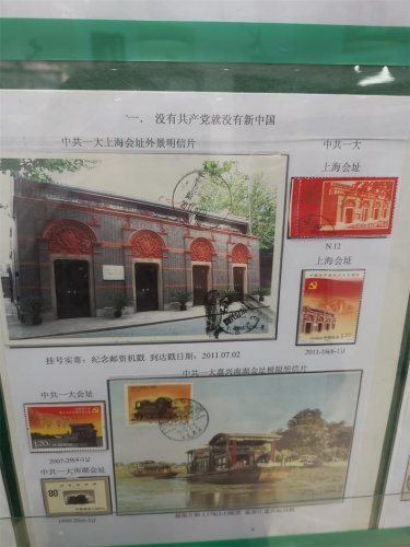 展覽不僅展出了郵票,還包括極限明信片、實寄封、紀(jì)念封等,品類多樣。比如這張中共一大嘉興南湖會址極限明信片,其上方的郵票、明信片和郵戳上的圖案高度一致,均表現(xiàn)的是嘉興南湖紅船。