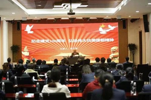 報告團主講人劉石安現(xiàn)年91歲,是原二十軍59師炮兵參謀,劉老精神矍鑠,身著老軍裝,胸前掛著軍功章和紀念章,首先向大家介紹了上海人民子弟兵——原二十軍的歷史。二十軍是最早入朝參戰(zhàn)部隊之一,雄赳赳氣昂昂地跨過鴨綠江,同美國為首的由十六個國家組成的“聯(lián)合國軍”展開了殊死戰(zhàn)斗。兩年中,經(jīng)歷了第二次戰(zhàn)役(即著名的長津湖戰(zhàn)役)、第五次戰(zhàn)役、華川阻擊戰(zhàn)等無數(shù)次大小戰(zhàn)斗,重創(chuàng)敵軍,屢建戰(zhàn)功。隨后,他向大家講起抗美援朝戰(zhàn)爭,劉老講述了楊根思和“冰雕連”的感人故事。在一次戰(zhàn)斗中,楊根思率領(lǐng)連隊打退美軍8次進攻,最后只剩他一人時,他以大無畏的革命精神,抱起炸藥包沖向敵群,與敵人同歸于盡……在長津湖戰(zhàn)役中,穿著單薄衣服的志愿軍戰(zhàn)士埋伏在零下四十攝氏度的陣地上,100多名士兵在冰天雪地中保持作戰(zhàn)姿勢,靜默犧牲?!氨襁B”戰(zhàn)士寧愿凍死也不撤退的精神給大家極大的震撼。