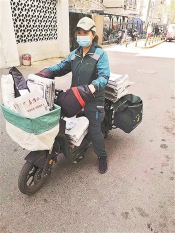 王浩然是北京安外郵政投遞部的一名送報(bào)員,她每天負(fù)責(zé)將一份份報(bào)紙送到服務(wù)區(qū)內(nèi)的訂閱者手中。王浩然所在的投遞部服務(wù)半徑為3.5公里,“平均每天送100多戶,一天中大部分時(shí)間都在外面跑,上午送日?qǐng)?bào),下午送晚報(bào),每天在投遞部和責(zé)任片區(qū)之間至少跑三個(gè)來回,20公里起步。”王浩然告訴記者。