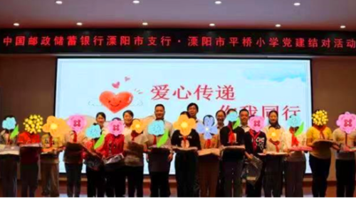 為進一步加強黨支部建設,引導和激勵廣大黨員干部“不忘初心、牢記使命”,郵儲銀行溧陽市支行黨支部、溧陽市平橋小學黨支部于5月11日上午在平橋小學報告廳開展了結對共建活動。這是該行自2016年與平橋小學簽訂結對共建協(xié)議以來,連續(xù)第6年組織黨員代表、“紅鈴鐺”課堂志愿者走進學校開展共建活動。