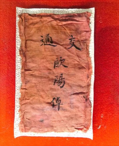 這份交通證只有巴掌那么大,用紅綢布制作,上面橫排寫著“交通”兩個字,下面就是他的名字“歐陽倬”, 他就是當年井岡山上的一位紅色情報交通員。