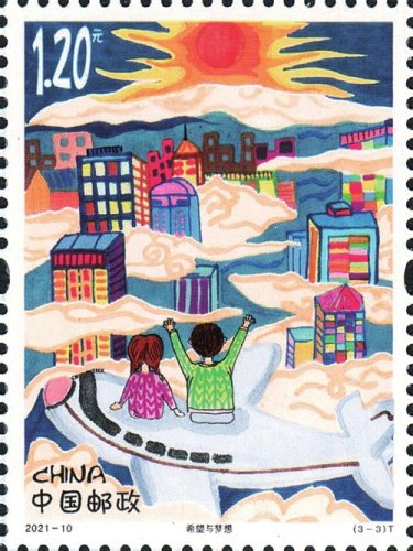 為慶祝中國共產黨成立100周年,中華全國集郵聯(lián)合會、中國郵政集團有限公司、中國宋慶齡基金會聯(lián)合舉辦了“永遠跟黨走逐夢新時代”全國少年兒童郵票創(chuàng)作設計作品征集活動。活動得到了全國各地少年兒童的積極響應,共征集作品18000余幅,涵蓋31個?。▍^(qū)、市)的261個地市。這些作品充分展現(xiàn)愛黨、愛國、民族大團結等時代主旋律以及人民的美好生活。經專家評審,共評出一等獎20名、二等獎46名、三等獎100名,其中3幅一等獎作品登上《兒童畫作品選》特種郵票,于6月1日發(fā)行,發(fā)行量為700萬套。