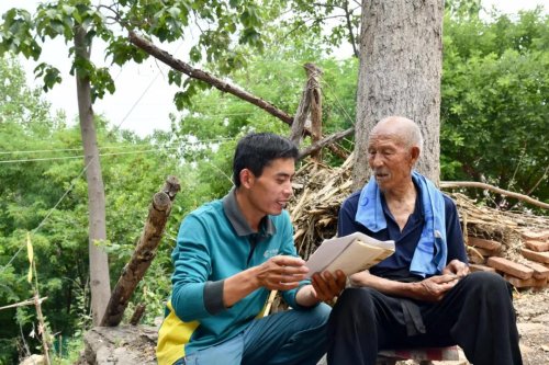 跟隨王德建,爬過超越45度的陡坡,轉(zhuǎn)過又急又窄的彎道,穿過崎嶇的山路,采訪組來到了岱崮鎮(zhèn)下旺莊村,見到了95歲的朱永德大爺,朱大爺緊緊拉住王德建的手,嘴里反復(fù)說:“你可太操心了,多虧了你啊,讓我得到了這個消息,惦記了70多年的這件事,如今終于可以放下了。你真是個大好人,我上哪找這么好的人啊。” 一別70多年后,朱永德大爺終于在王德建的努力和堅持下得知了哥哥的消息?!艾F(xiàn)在終于知道埋在哪了。”