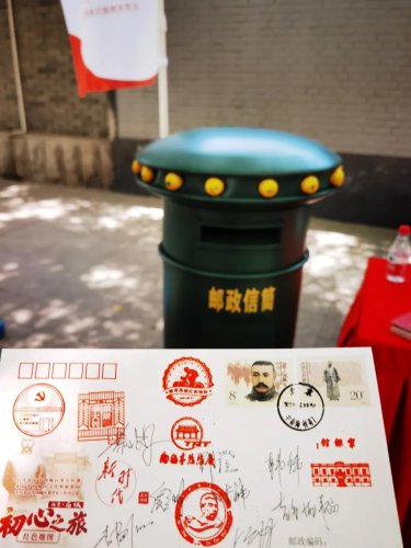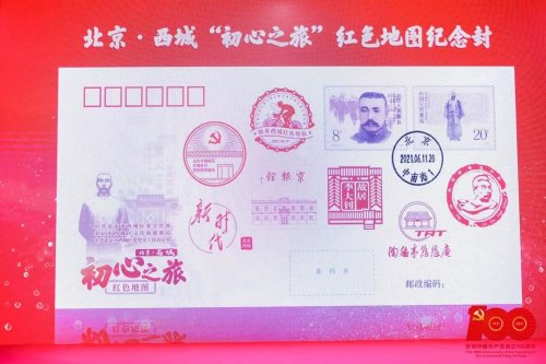 為紀念這一活動,西城區(qū)分公司設(shè)計推出了“初心之旅”紅色地圖發(fā)布紀念封一枚和紀念戳一套六枚。紀念戳分別在天橋印象博物館主會場,京報館(邵飄萍故居)、李大釗故居、西城紅墻意識黨性教育基地三處分會場提供紀念郵戳加蓋服務(wù)。