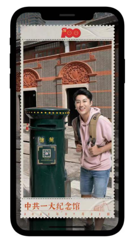 每枚明信片車票都附帶郵資,市民游客在游覽結(jié)束后便可投入郵筒寄給自己或是親朋好友,讓紅色星火得到更多傳遞。通過AR技術(shù),市民游客只需掃描明信片上的二維碼,即可在手機上呈現(xiàn)出動感景區(qū)專線車場景和點位自拍打卡場景。