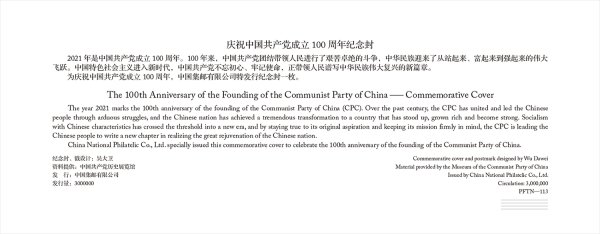 按照中國共產(chǎn)黨成立100周年慶祝活動安排,經(jīng)報請中央有關(guān)部門審定,中國郵政將于2021年7月1日發(fā)行《中國共產(chǎn)黨成立100周年》紀(jì)念郵票1套20枚,紀(jì)念封1套1枚。