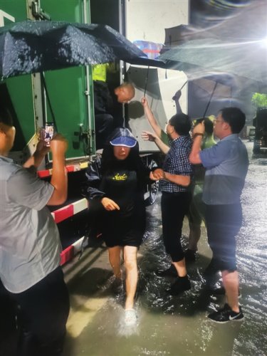 雨越下越大。李永輝和同事們緊急商定:把138名農(nóng)民工從齊腰深的積水中救出,必須絕對(duì)保證人身安全,同時(shí)必須抓緊時(shí)間,避免積水越來越深。為此,他們專門調(diào)出一輛9.6米長(zhǎng)的半掛郵車。這種郵車一則車輪就有1米多高,可以在深水中開行;二則有大容積的車廂,可以一次把全部人員轉(zhuǎn)移過來,節(jié)約救援時(shí)間,最大限度保證人員安全。臨行時(shí),李永輝一遍遍叮囑有著20多年駕齡的司機(jī)老崔一定要謹(jǐn)慎駕駛,保證絕對(duì)安全。