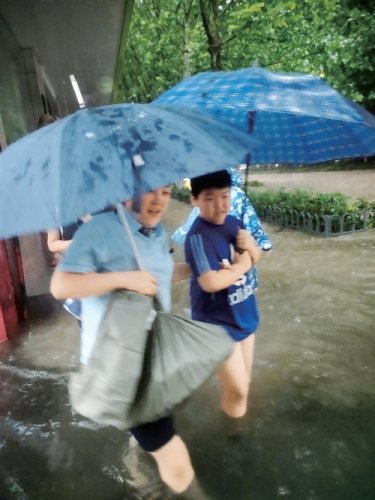 為保證郵件按時(shí)出口,鄭州郵政營(yíng)業(yè)員冒雨護(hù)送郵件至附近投遞班。