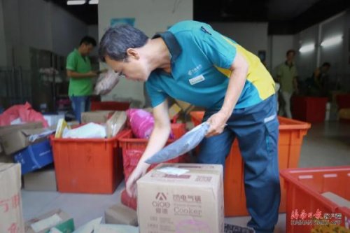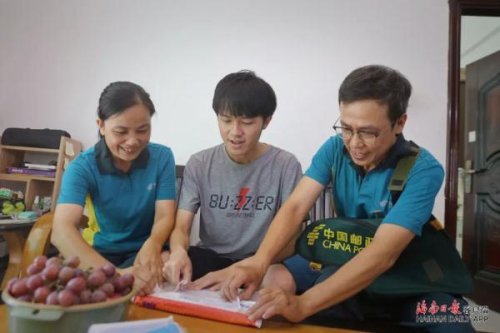 “老盧,你兒子的錄取通知書到了,今天就派你去投遞了??爝^來登記下,你可要請客呀!”25日上午8點不到,在中國郵政集團有限公司??谑蟹止菊衽d營攬投站,工作人員從今天上午6點運達的快件中,分揀出一袋高考錄取通知書。打開袋子,“眼尖”的站長李世杰一眼就看出其中一個快件來自北大招生辦,收件人正是盧志強的兒子盧海山,就趕緊招呼“老盧”去投遞。
