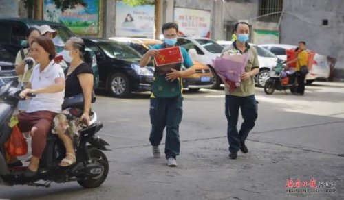 盧志強的家離攬投站很近。10分鐘不到,就到了小區(qū)樓下。下車后,盧志強三步并作兩步爬上了樓。敲開門,嚴格按照流程,查驗兒子盧海山身份證和準考證后,才把快件鄭重交到兒子手中。