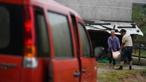 10月6日,雙峰郵政所的郵遞員吳文清(右)幫一位村民搬運貨物。