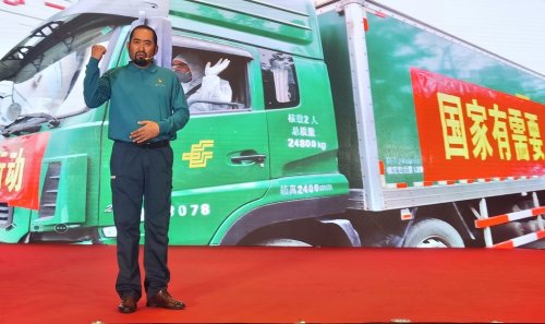 在品牌展位區(qū),四川省郵政分公司精心準備的時代楷模同款郵車、雪線郵路定制雪球、雪線農(nóng)品、圖書《時代楷模其美多吉》《雀兒山高度》、格薩爾王明信片、熊貓郵局書簽等18款文創(chuàng)產(chǎn)品大受歡迎,原本準備2天的贈送產(chǎn)品,1小時內(nèi)便全部贈送完畢。其美多吉更成為活動現(xiàn)場的“明星”,各家品牌代表爭相與其合影留念。